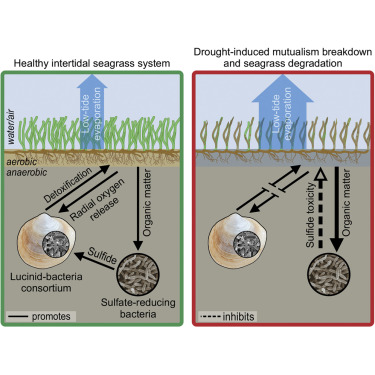In our second paper in Current Biology by Jim de Fouw et al. found that – beyond coral bleaching – disruption of foundational marine mutualisms can cause rapid and large-scale ecosystem degradation: In a severe hot spell, breaking plant-mollusk partnerships speeds degradation. This we studied in the vast intertidal seagrass beds of Banc d’Arguin, Mauritania (West-Africa). Here the feedback loop between seagrass and lucinid bivalves with sulfide oxidizing gill bacteria drives landscape-scale degradation of tropical intertidal seagrass beds. Media coverage by ScienceNews on “How to keep seagrass ass happy as a clam” (pdf: download from www.penyu.nl/publication/ )