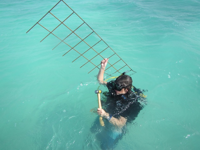 Two weeks ago we arrived on Bonaire. Since then we worked non-stop and we made great progress! The first thing we did was to set up a turtle exclosure experiment on the seagrass beds in Lac Bay, after Funchi (STCB) and Sabine Engel (STINAPA) kindly showed us all the suitable seagrass areas. The native dominant seagrass species here are Thalassia testudinum (or turtle grass) and Syringodium filiforme. However after a quick snorkel survey across the bay the cover of invasive seagrass species Halophila stipulacea seems almost higher.