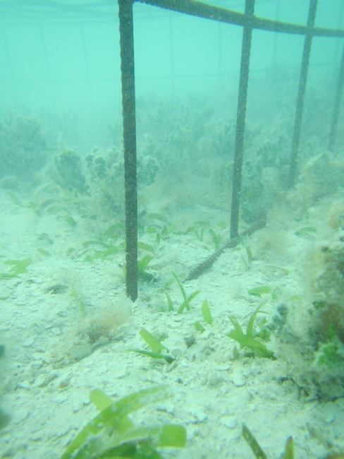 The underwater cages that we use to prevent turtles from grazing certain seagrass patches will be followed during the next years by MSc students in cooperation with Imares, STCB and STINAPA.