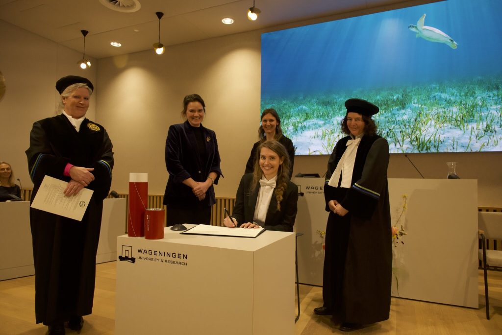 Written by Fee: ” What a day! Last Friday I defended my thesis ‘Herbivores shape the seascape’ at Wageningen University & Research. I was totally overwhelmed to get the designation ‘cum laude’ added to my degree. Many thanks to