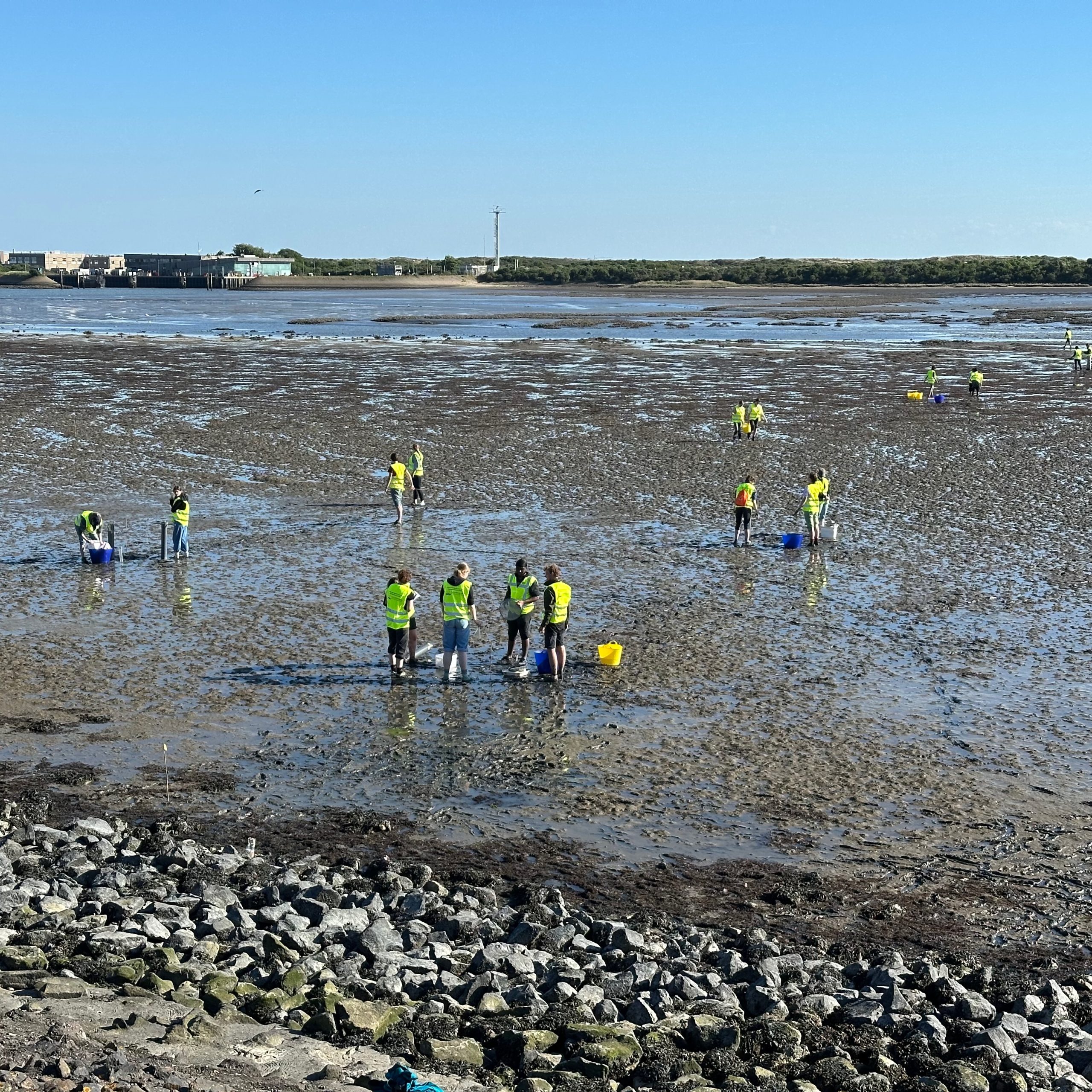 Topics ranged from lab experiments and field observations on the effects of inundation duration, to interviews and surveys exploring perceptions of plastic on Texel’s beaches — showcasing a wide variety of approaches. I even found a moment to join some students snorkeling in 17°C water to help sample Leandra Kornau‘s experimental settlement plates in the harbor — an unexpected highlight! In addition, we held practicals where students explored links between sediment characteristics and benthos on the mudflats, created a sediment budget for the Slufter by measuring flow velocity and suspended matter, and learned about subsampling using the bycatch from a shrimp trawler.