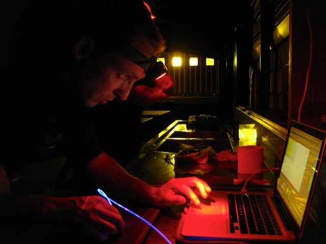 After some long days in the field we took in the camp kitchen. Fons and Tjisse worked all night to measure the photosynthetic efficiency of the seagrasses, which resulted in this cool picture:
