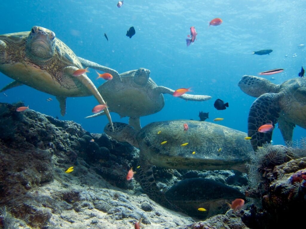 To get an idea of green turtle densities on foraging grounds around the Derawan Archipelago I hopped over the border to Malaysia to visit the islands around Semporna (Mabul, Sipadan, Pom Pom, & Pandanan). Steve Oakley and Celebes Beach resort were so kind to host me on Pom Pom Island. Read the blog post by Steve Oakley on our work here, also if you are looking for a student project on turtles. High densities on the seagrass here! But Derawan turtle densities are still on top. Turtles here are more restricted to a limited time frame for grazing due to a different tide. On Sipadan I found a lot of juvenile turtles that grazed on hairlike Halodule uninervis in only 15cm of water. On the coral reef turtles could be approached so close that I could read the tag numbers and most of the subadult turtles had flippertags all tagged on Sipadan itself. The turtles seem to stay for a long time on the same place. The Green turtles are real fish-spa addicts, so many times you see the green turtle stretching out in a cloud of cleaner wrass and cleaner emperor fish, and on Sipadan I saw a group of 8 turtles fighting (biting!) over taking over the best spa-spot on a big rock.