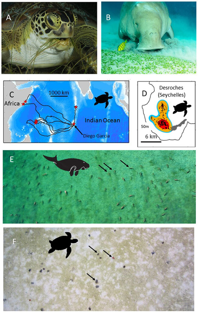 Today our new paper came out in Frontiers of Marine Science. Here we describe this concept, showing how detailed information on the distribution of both dugongs (Dugong dugon) and green sea turtles (Chelonia mydas) obtained, for example, by aerial surveys and satellite tracking, can reveal new information on the location of seagrass meadows. Seagrasses are hugely valuable to human life, but the global extent of seagrass meadows remains unclear. As evidence of their value, a United Nations program exists (http://data.unep-wcmc.org/datasets/7) to try and assess their distribution and there has been a call from 122 scientists across 28 countries for more work to manage, protect and monitor seagrass meadows (http://www.bbc.com/news/science-environment-37606827). We show examples of how marine megaherbivores have been effective habitat indicators, revealing major, new, deep-water seagrass meadows and offering the potential for more informed estimates of seagrass extent in tropical and sub-tropical regions where current information is often lacking.