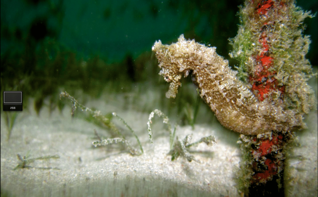One of the cool things of seagrass meadows is that at first sight it might not seem too rich in animal life. But when working for hours on the seagrass around our cages and sandbags you find cool new animals that you might miss normally. In the last weeks I went out to make the perfect green-turtle-grazes-on-seagrass-picture but every time the visibility was crap or it was too deep or the current was too strong but then during the struggle under water I found 2 of my favourite animals (just in front of my house !): the robust ghostpipefish and a orange frogfish (species still needs identification).