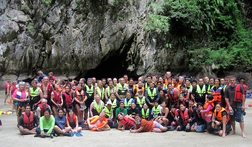 Here a group picture of al the people joining the ISBW inside the Emerald Cave after surviving the 80 meters of darkness to enter the cave in snake-formation: