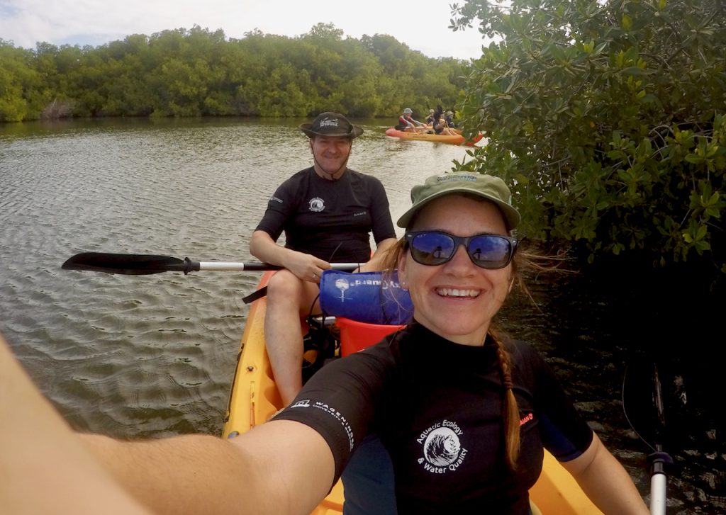 Day 1 was all about the coastal ecosystems of Lac Bay, mangroves and seagrasses. With Elly Alberts we kayaked and snorkeled through mangroves meanwhile conducting water quality measurements. Sabine Engels showed recent mangrove restoration efforts, and Fee, Julia and myself presented our seagrasss experiments. We measured greenhouse gasses, and used a rain simulator to look at surface water run off in order to map the connectivity between the land and coastal ecosystems.