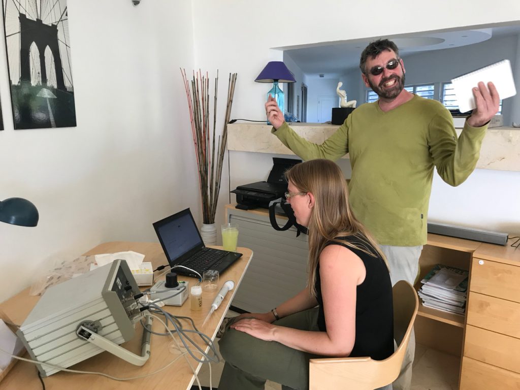 Day 2 was about cyanobacteria mats and coral reefs. Snorkelers were send on a quest to investigate interactions between organisms. Divers collected cyanobacterial mats from multiple depths after which productivity was measuredon cyanobacteria from different locations. Our expedition was not only about natural and social sciences. Culture was an important part of the agenda too. During lunch a spontaneous concert arose in Rincon by Marten and our new friends. And in the evening Uchi (Regina) Frans read us some of her poems in Dutch and Papiamentu, and told many entertaining stories of Bonaire in the past. Also great way to learn more about the perceptions of non-ecologist-Bonairians.