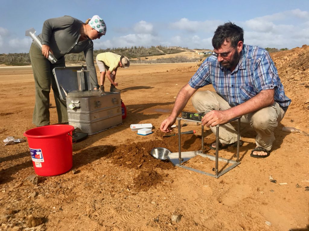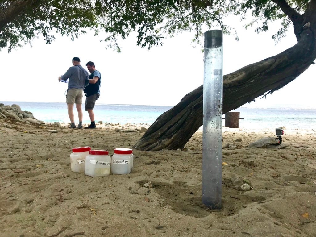 Day 3 Land-sea interactions. Quirijn Coolen, Caren Ekrich, and Roxanne Francisca showed us active and passive forest restoration projects in Washington slagbaai national park. We also sampled land-sea transects to investigated runoff and erodibility and learned about the importance of soil type in estimating runoff, in addition to grazing impacts. Under water we sampled sedimentation on the reefs.